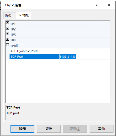 多个端口,用逗号隔开,例如:1433,21433